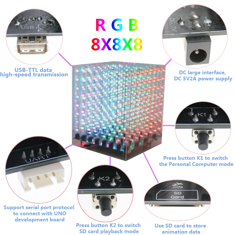 electronic diy kit 2018 NEW 3D 8 8x8x8 RGB/Colorful led cubeeds kit with Excellent animations Christmas Gift for SD card